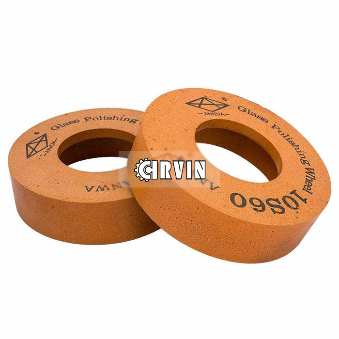 Anhua standard 10S polishing wheel uses for fine grinding and rough polishing to glass edge and arris on straight line edge machine or double edge machine. Remove slight lines/marks left by resin grinding wheel and change matt edge to be unclear but transparent one that is good for fine polishing. Diameter 150mm for bottom edge. Diameter 130mm for arris.